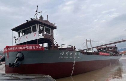 2025年9月29日,由重慶帝力游艇制造有限公司為廣元港集團承建的3艘1000噸級集散兩用貨船,第一艘“興川江26號”在我司生產基地順利下水。廣元港集團、監理單位等相關人員出席。